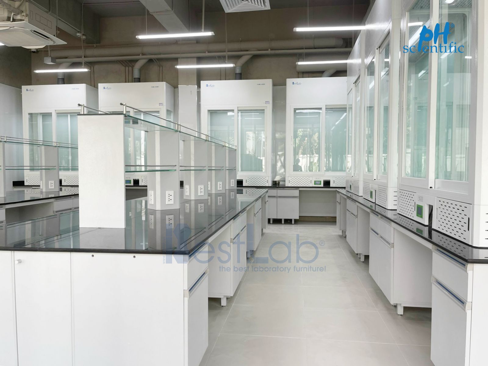 Với công trình lần này, Phượng Hải đã mang đến các sản phẩm cao cấp, gồm: bàn thí nghiệm trung tâm, tủ hút khí độc, tủ hút lạnh, phòng ngửi hương...