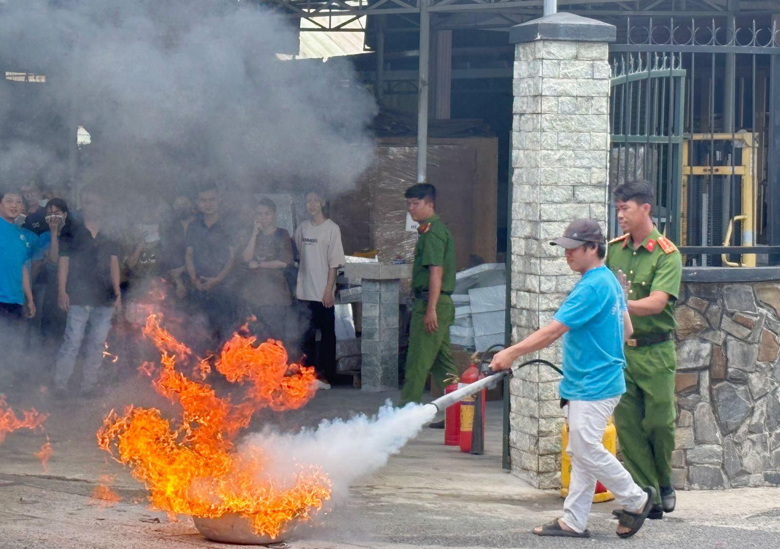 Ngoài ra, nhân viên Phượng Hải còn được hướng dẫn thực hành các kỹ thuật PCCC cơ bản như: sử dụng vòi phun, sử dụng bình chữa cháy bằng bọt và bình chữa cháy bằng khí CO2 để dập tắt đám cháy tại chỗ.