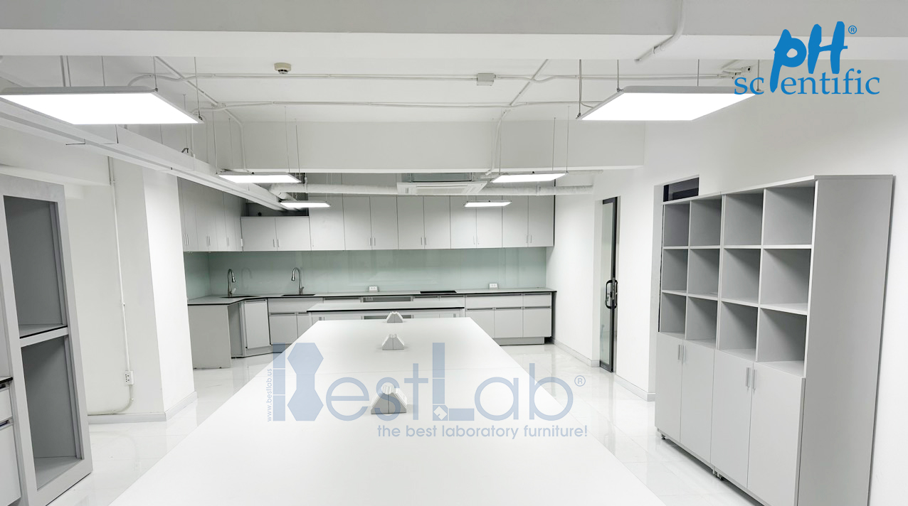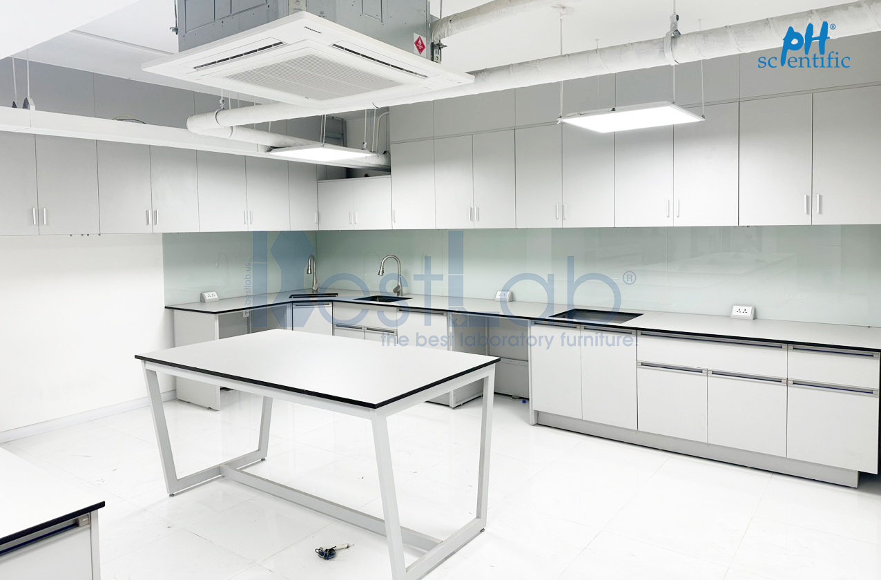 Với Công ty Thực phẩm dinh dưỡng, Phượng Hải cung cấp giải pháp trọn gói bao gồm: Tủ treo tường sát trần, Bàn thí nghiệm áp tường chữ L, Bàn thí nghiệm trung tâm, Tủ trưng bày,…được Phượng Hải thiết kế, tính toán và bố trí hợp lý nâng cao tính an toàn và thẩm mỹ cho phòng lab.